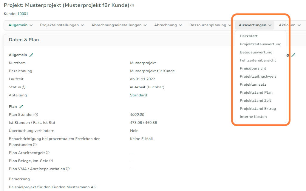 Projektauswertungen Detail
