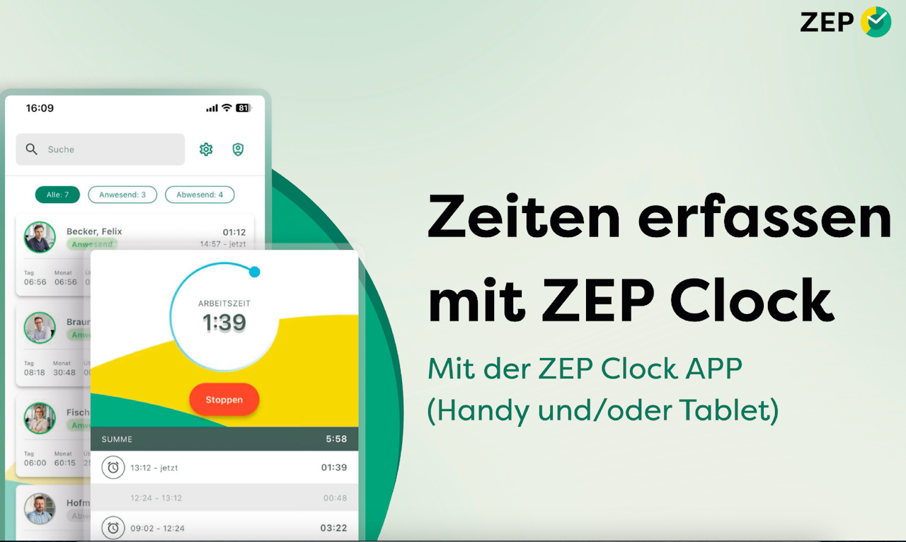 With the ZEP Clock app, users have the ability to clock in and record absences using a mobile device.